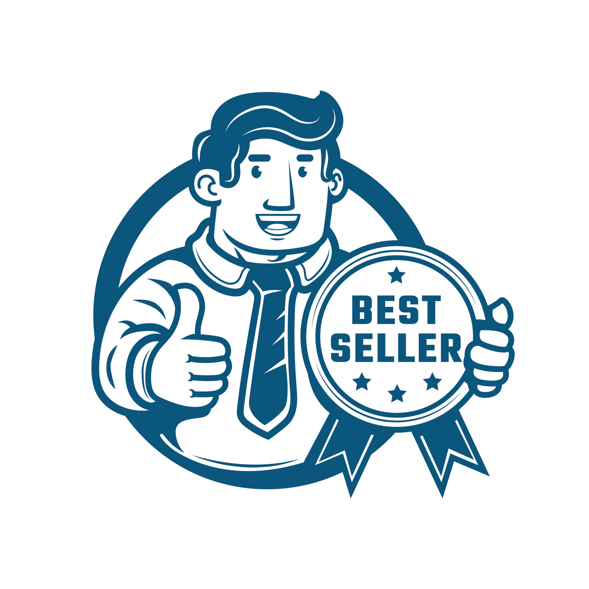 Business Man Making Thumb Up Holding Best Seller Gold Medal Sign Vector Logo Illustration 2410613 Vector Art At Vecteezy